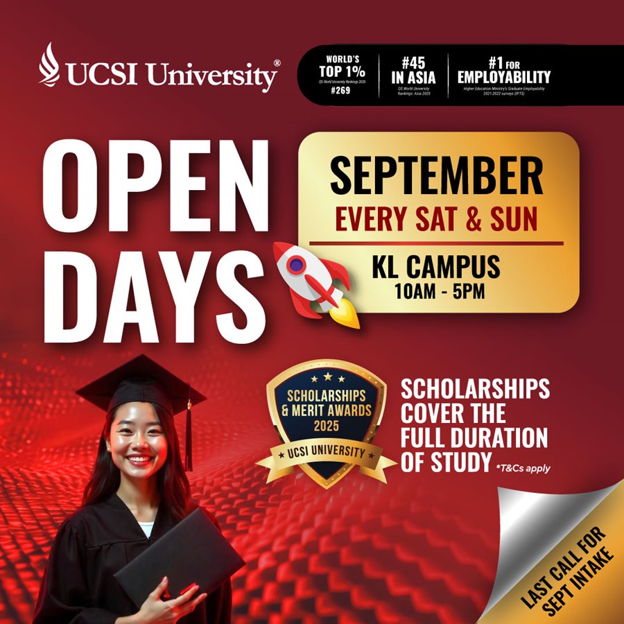 Established in 1986, UCSI University has steadily risen as a premier institution with 4 campuses and a vibrant student community from over 120 nations. Offering 150+ programmes from Pre-U to PhD, UCSI is home to top 2% global scientists and boasts 100% graduate employability. Pioneering Southeast Asia’s first mandatory internship in 2004, UCSI blends academic excellence with real-world experience, ranking in 9 QS subjects including Music and Hospitality.